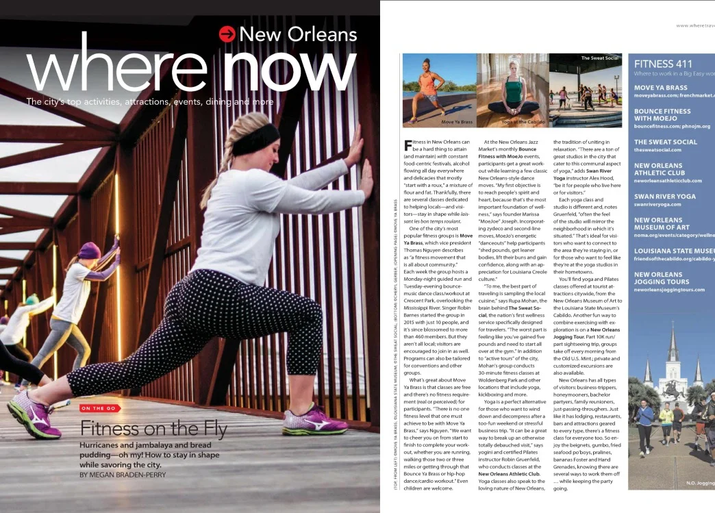 In the January 2017 issue, the travel magazine Where New Orleans features Move Ya Brass and others on how they can stay healthy and active while visiting our city.